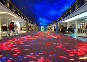 互動(dòng)地磚屏是在LED地磚屏的基礎(chǔ)之上,增加了感應(yīng)互動(dòng)系統(tǒng),就有了人屏互動(dòng)效果。LED地磚屏要實(shí)現(xiàn)互動(dòng)效果,有以下幾種方法:LED地磚屏內(nèi)部安裝感應(yīng)芯片、內(nèi)部安裝壓力傳感器或電容式傳感器、外置紅外傳感器、雷達(dá)感應(yīng)設(shè)備。
